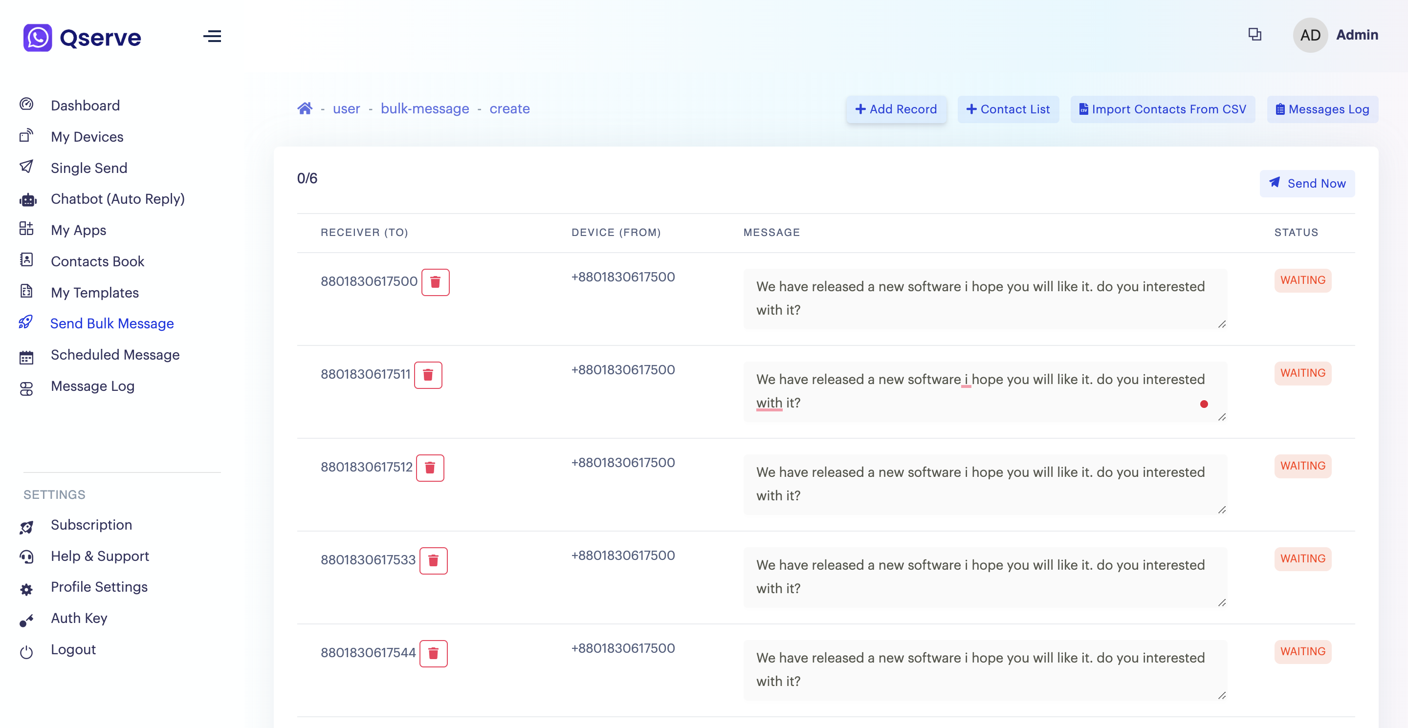 WASender Maior Visão, é a disseminação de grandes números de mensagens para entrega ao software WASender. É usado por empresas de mídia, bancos e outras empresas e marcas de consumo para uma variedade de propósitos, incluindo entretenimento, marketing empresarial e móvel.